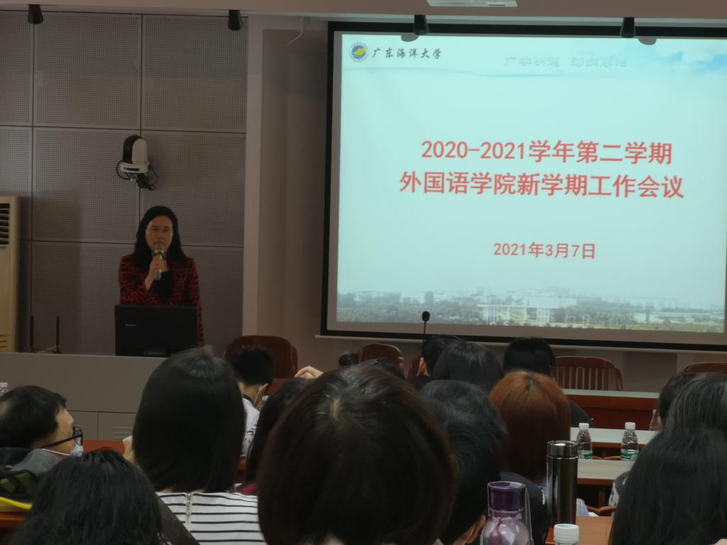 经理郭遂红对2020年度的考核情况、团队建设、专业课程建设、人才培养、团队队伍建设、科研工作、员工工作等方面进行了全面的总结,对新学期的工作进行了全面部署并提出本年度的工作要点:一是科学编制公司“十四五”发展规划,二是多措并举,全面加强课程建设和专业建设,根据教育部“双万计划”,申报国家级、省级一流专业建设点和省级一流课程。全面推进公司课程思政建设工作,加强建设以及申报“课程思政”试点专业、示范课程、示范课堂、教学团队等。三是以学位点建设为抓手,加强第六轮校级重点学科-外国语言文学的建设,提高科研水平,力争在论文发表、学术著作出版等方面取得新突破。四是强化团队队伍建设,通过内培外引,大力加强团队队伍建设,推进师德师风建设,提高教师专业素质、教学能力与科研水平。五是推进对外合作及学术交流,拓展合作领域,努力提高自身实力。六是优化条件建设,推进“大实践工程”,加大与企业的合作,拓展实习实训就业基地,协同育人。七是以赛促学,以赛促教,丰富外语第二课堂。八是通过思想引领工程、职业发展工程、专业引导工程 、素质提升工程 、成长计划工程等做细做实员工工作。同时还强调了加强意识形态、师德师风和思想政治教育,为公司各项工作的开展提供强有力的政治和思想保障。