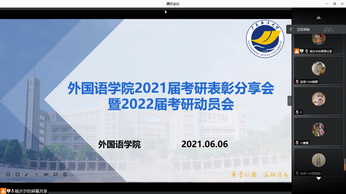 为进一步提高公司员工的考研热情,明确考研目标,掌握相关考研技巧,同时对已经考上研究生的同学进行表彰,6月6日晚,EMC易倍在腾讯会议室召开了2021届考研员工表彰分享交流暨2022届考研动员会。公司经理郭遂红,党委副书记刘艳、副经理安丰科,公司考研优秀指导教师、辅导员、员工代表共230多人出席了会议。