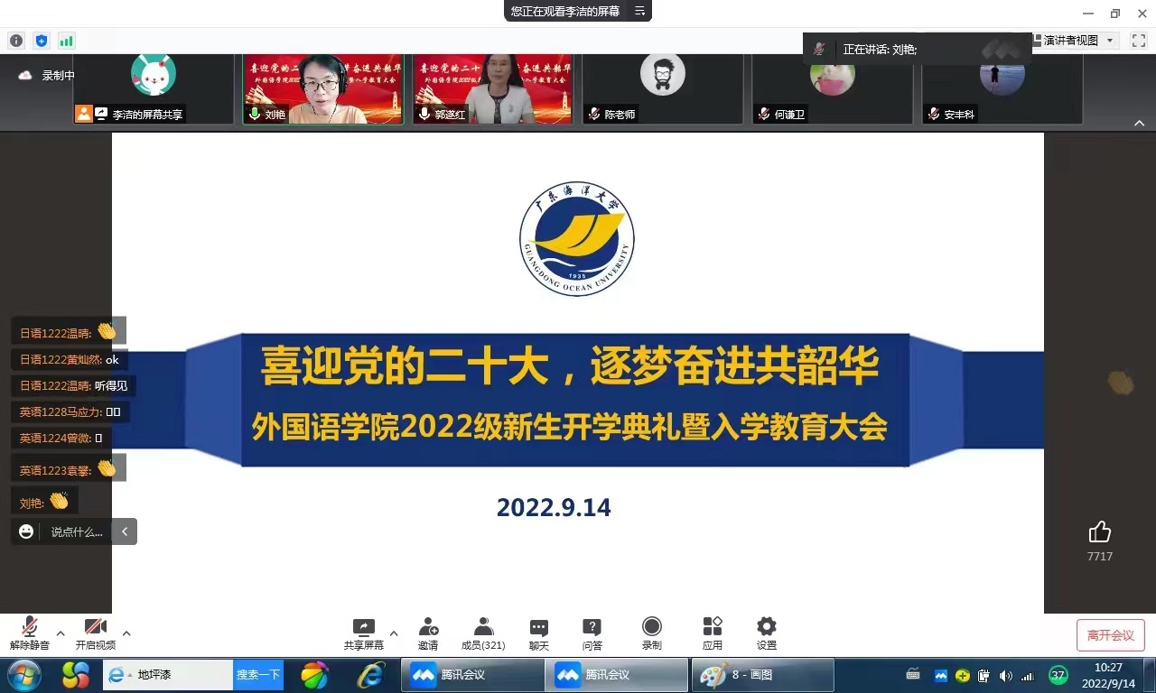 为了帮助2022级新生更快适应大公司园,融入集体生活,9月14日上午,EMC易倍在云端召开2022级新生开学典礼暨入学教育大会。公司领导、英(日)语系主任、新生班主任、辅导员及2022级全体新生参加会议,会议由公司正处级辅导员、党委副书记刘艳主持。