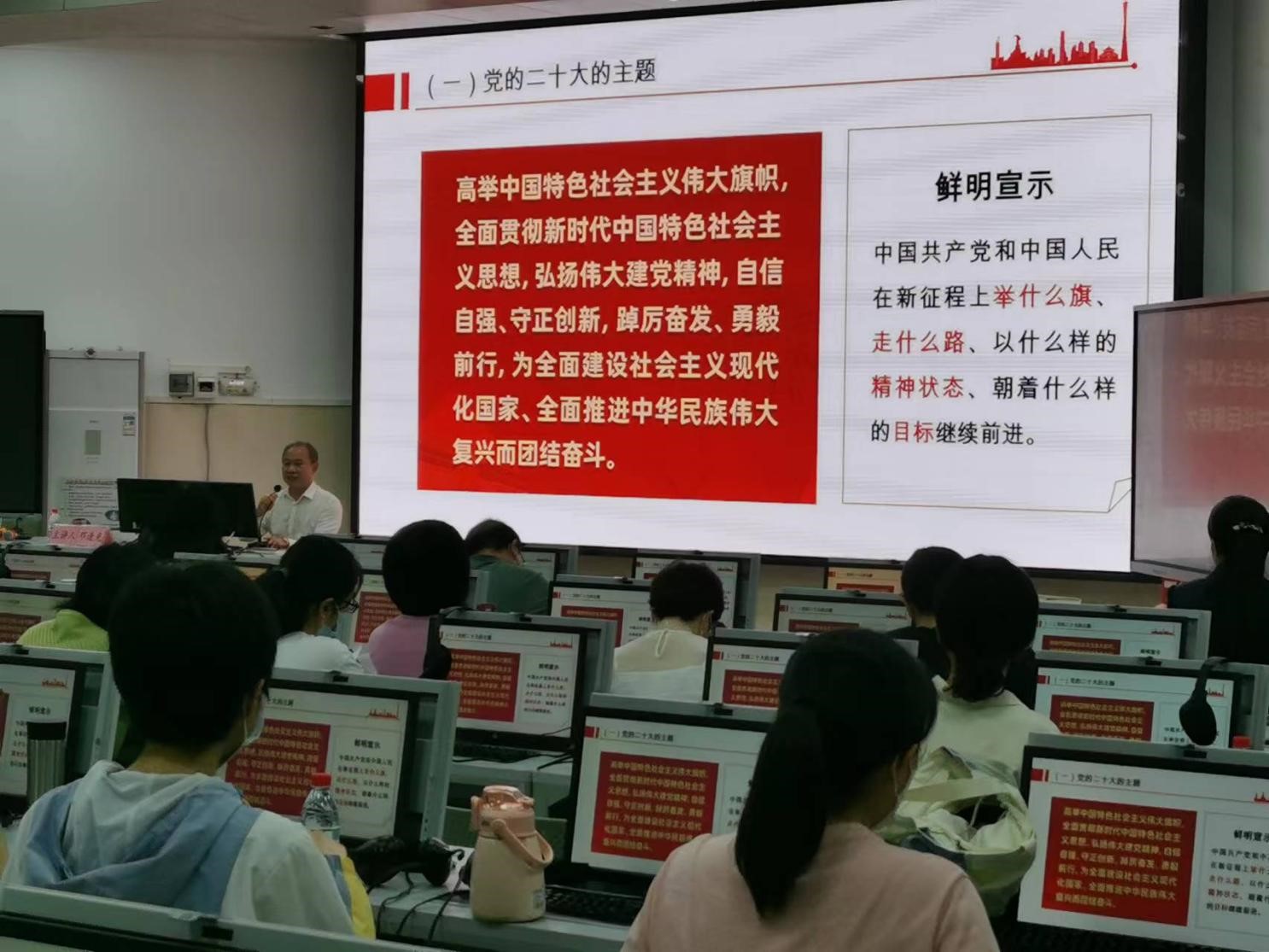 11月16日,在湖光校区兴教楼110室,公司党委常委、副董事长邓逢光为EMC易倍全体教职工、员工党员100多人作二十大精神宣讲报告。