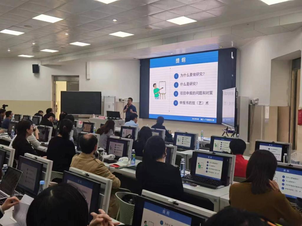 下午3:30,在湖光校区兴教楼110,公司全体教师参加了第一场讲座,正处级辅导员、党委副书记刘艳主持。吴庄教授以《外语教学科研项目申报的策略与方法》为题,从外语教师为什么要做研究、什么是研究、项目申报的难点和对策、申报书的技术与艺术等四方面,以个人申报书为例,结合个人申报和评审国家社会科学基金项目的心得体会,为公司教师申报项目出谋划策,并分享了广东外语外贸大学做有组织的科研的具体举措,为公司科研的高质量发展提供了借鉴。讲座高屋建瓴,既有理论深度,又有极强的可操作性。