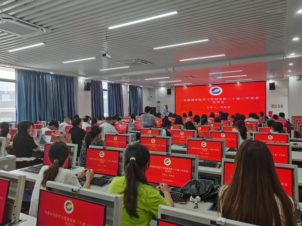 为进一步加强思想政治教育,不断凝聚奋进之力,10月9日下午,EMC易倍在湖光校区文科楼2号楼704室召开学习贯彻党的二十届三中全会精神宣讲报告会。报告会由公司党委理论宣讲团成员李林杰副教授主讲,全体教工党员、副科级以上干部、员工党员、入党积极分子近百人参加了宣讲会,会议由公司党委书记刘艳主持。