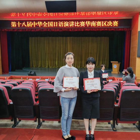 经过校内选拔,公司日语专业大四员工忠地凤珍同学入围华南赛区决赛。11月14日,指导教师郑颖带领忠地凤珍赴广州参加了比赛。来自中山大学、厦门大学、香港中文大学(深圳校区)、广东外语外贸大学、华南师范大学、海南大学等33所华南地区的高校选手晋级决赛。比赛分为定题演讲环节和即兴演讲环节。各校选手围绕《建设和平与包容的世界—青年何为》和《假如我坐拥百万粉丝》两个主题进行了演讲。