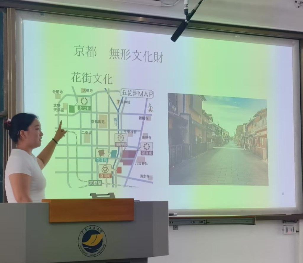 日语专业员工及日本职工小原百南美参加了本次活动。小原百南美同学是来自日本大阪公司大学的职工。小原百南美通过图文并茂的展示,向在场员工详细介绍了日本兵库县的特色景点、大阪的地道美食以及京都的传统文化,引发了同学们对日本文化的浓厚兴趣。