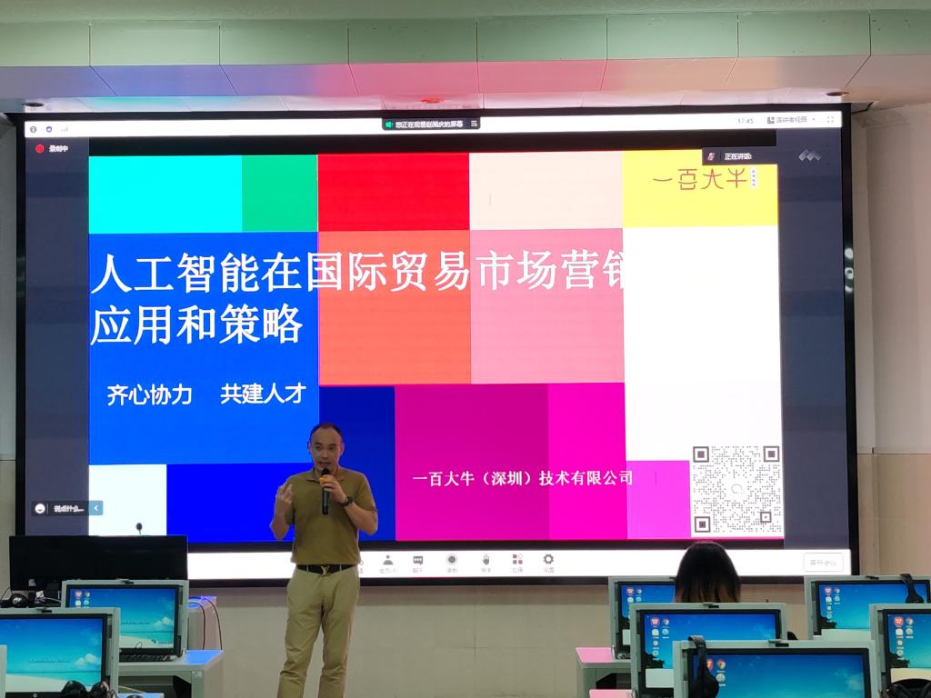 2023年11月22日晚,EMC易倍行业导师,一百大牛(深圳)技术有限公司创始人赵国庆在兴教楼110作了题为《人工智能在国际贸易市场营销中的应用和策略》讲座。2020级英语专业商务英语方向百余名员工参加讲座。讲座由EMC易倍副经理安丰科主持。