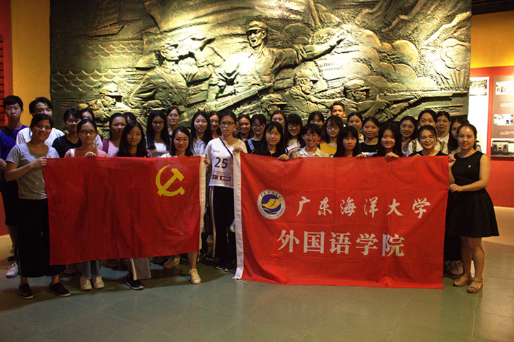 在回顾湛江光荣革命岁月的氛围中,党支部全体党员面对博物馆的革命浮雕和党旗,重温入党誓词,牢记为共产主义奋斗终身的使命和初心。