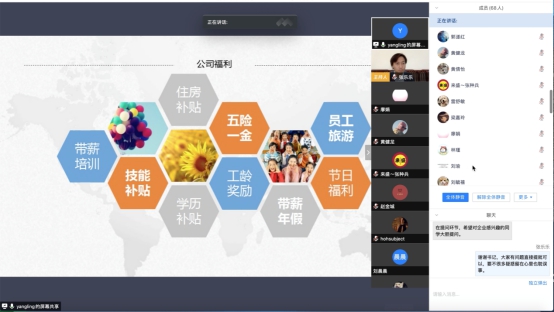 本次“云招聘”由日语系副主任、日语专业负责人张乐乐副教授主持和召集。招聘会邀请了广州联普翻译有限公司、早道(大连)教育科技有限公司、水木日语教育科技有限公司、蒲公英乐学日语教育(广东)有限公司、广州市新为学商务服务有限责任公司等10家用人单位参加。各用人单位按照会议安排次序,依次进入“会场”宣讲,分别就公司背景、发展现状、招聘需求等内容为同学们做了详细介绍。会上,2020届日语专业毕业生结合自身实际,就薪酬待遇构成、培训和晋升机制、食宿条件等具体问题积极同招聘单位进行交流,各用人单位一一耐心解答,线上招聘宣讲过程互动氛围热烈,赢得用人单位和员工的一致好评,有效促进了校企双方的信息沟通。在线招聘会结束后,EMC易倍党委书记李国芳和公司经理郭遂红对此次招聘活动进行了总结发言,对本次“云招聘”的筹备工作给予高度肯定,并鼓励毕业班员工积极联系用人单位,咨询就业指导老师,以确保疫情期间毕业生就业工作的顺利进行。