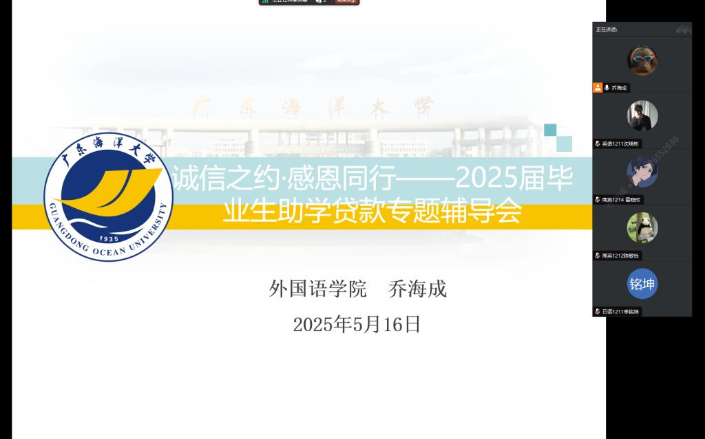 为强化贷款毕业生诚信意识,明晰还款责任,5月16日,EMC易倍通过腾讯会议举办 “诚信之约・感恩同行 ——2025届毕业生助学贷款专题辅导会”,由负责资助工作辅导员乔海成主持,30余名办理生源地助学贷款的毕业生参会。